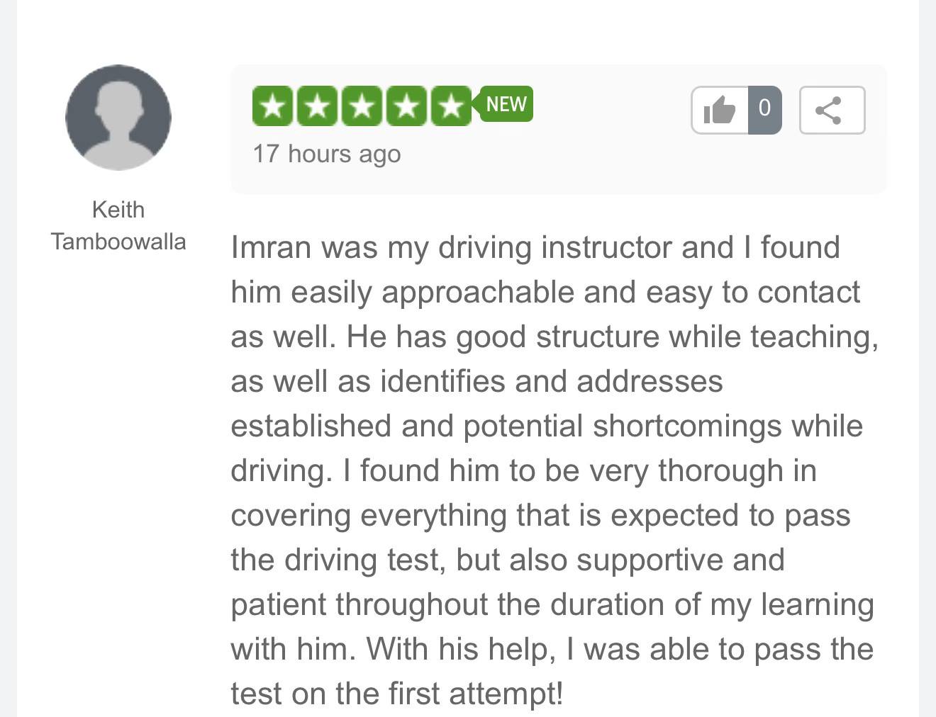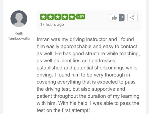 Learners consistently appreciate his calm approach, clear coaching, and structured lessons that build confidence quickly. If you’re looking for a reliable, knowledgeable instructor with a strong record of success, Imran is your go-to choice.
